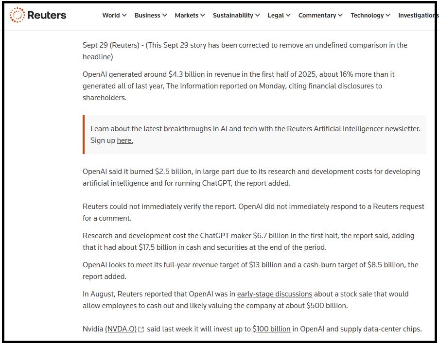 But despite this, OpenAI found it necessary to continue investing in other companies. Let us look at the chart of money flow given by Bloomberg. This is not something I made up, but reported by a well-known news source.