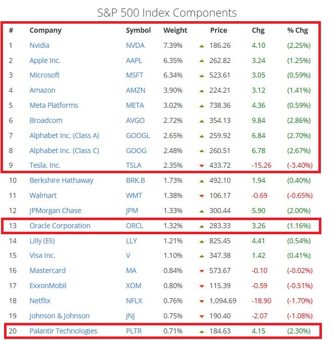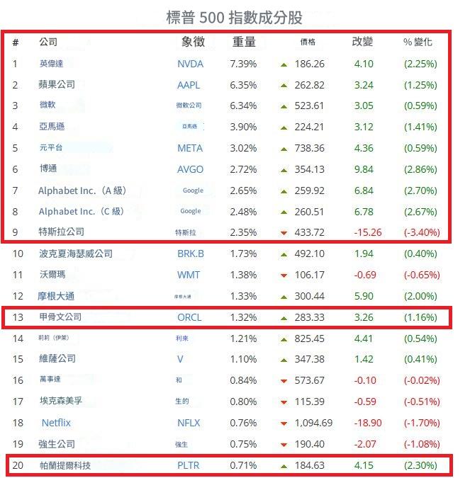 但是當我們仔細注意標普500的結構,就會發現指數是嚴重傾向科技公司的,而這些公司大多都參與了AI熱潮。